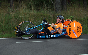 1984, Stoke Mandeville, UK. The first time that a Men’s 1A Marathon for wheelchair athletes is held during the Paralympic Games (1A is the category for the most severely disabled athletes like Heini, who is a C5/6 quad). Heini was the only one to finish, winning his first of four consecutive gold medals in this Paralympic event: Stoke Mandeville 1984; Seoul 1988; Barcelona 1992; Atlanta 1996. He competed in his last Paralympic wheelchair marathon in Sydney 2000, winning silver. In all, Heini competed in more than 160 marathons and road races around the world. He spun his best time at the Berlin marathon in 1995, setting the world record in his category of 2:23:08.