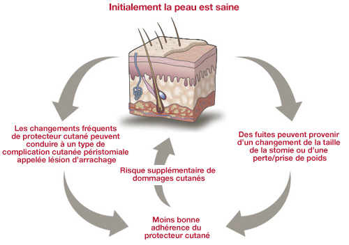 - Lorsqu'une complication cutanée péristomiale se produit, votre peau risque de subir d'autres lésions, ce qui peut entraîner un cercle vicieux.